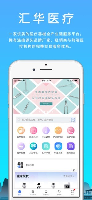 汇华医疗器械app是提供有关医疗器械服务的应用app,有最新的资讯及时推送,专家独家解读厂家政策,业内动态行情一手掌握,提供各种各样器械产品,还提供商务学院、工程学院学习,有完善的学习计划,基础必修,掌握专业知识!