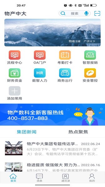 物产中大软件是物产中大旗下官方在线办公服务应用app,实时推送最新的集团新闻,聚焦热点头条资讯,还提供流程中心、oa门户、考勤打卡、财务资金、商务出行等功能服务,更有通讯录可以随时交流沟通,协同办公,操作轻松又便捷!