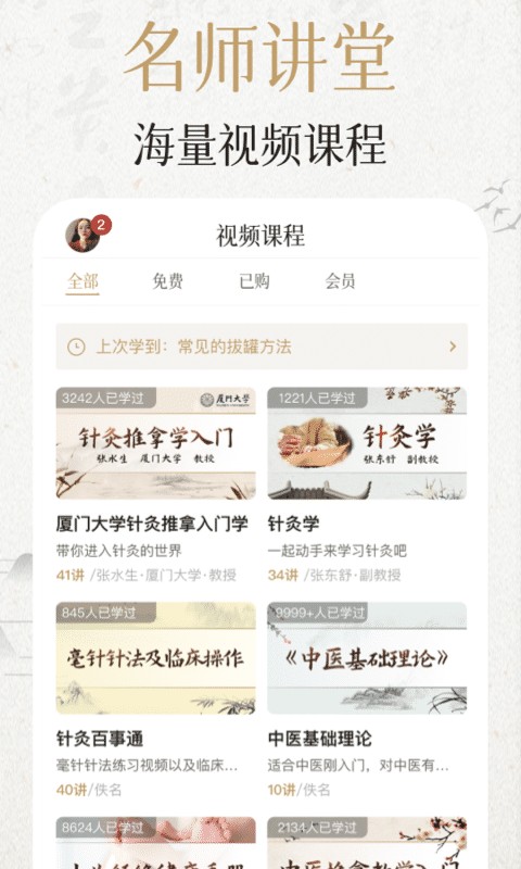在线学习,软件中能够高效的学习各种中医的知识,完成题目提升自己的成绩。