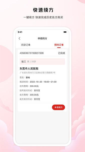 用户可根据问诊记录,再次申请快速续方,免去重复问诊的烦恼。