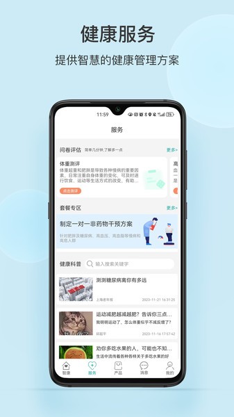 2、APP实时监控并记录用户的身体状态,为大家定制个性化健康方案,让你可以健康的生活。
