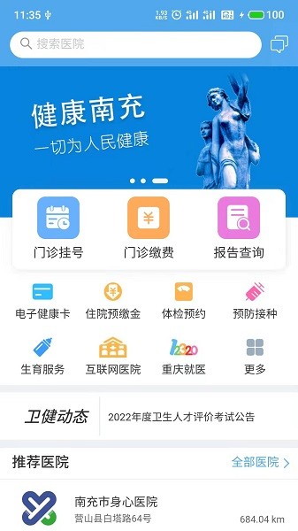 健康南充,是南充市卫生和计划生育信息中心指定的南充就医指导,为患者提供全方位就医服务。通过健康南充,患者不仅能够随时随地进行挂号预约、门诊缴费、查看检查检验报告单,还能查询自己的健康档案,与医生紧密联系,查询疾病知识。