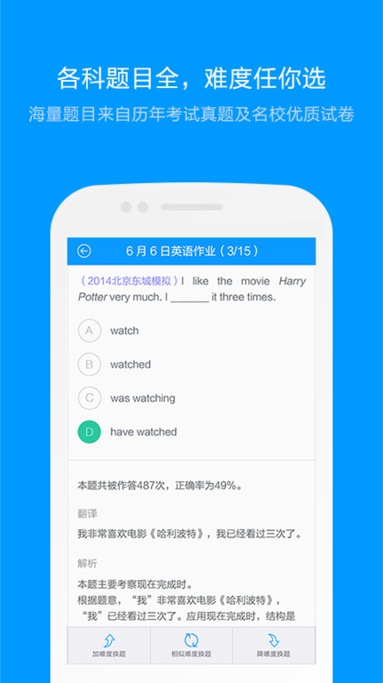 3、各科题目全,难度任你选: