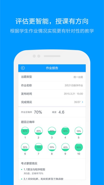 3、智能的进行分析,通过平台能够全面的了解学生的学习情况,更好的使用;