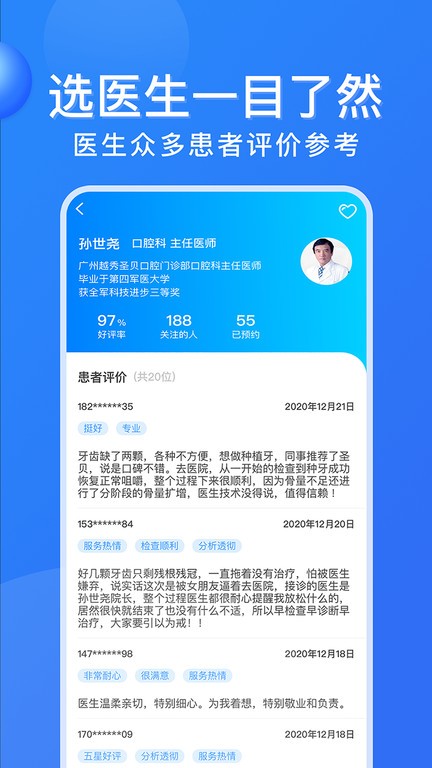 还有实时更新的医生排名和评论,让我能随时了解各个医生的情况。无论是本地还是外地用户都能用,覆盖了大大小小的医院,真的很贴心。