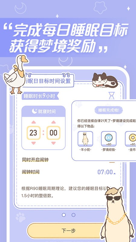+每日按照睡眠目标规律睡眠,即可获得梦境奖励,经营自己的旅店