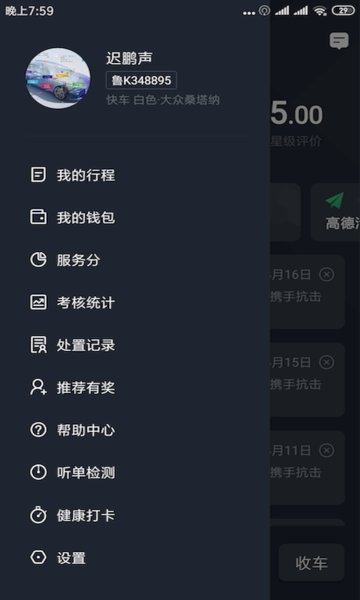 3、可以在平台上面完成健康打卡,而且系统能够根据司机位置推送订单。
