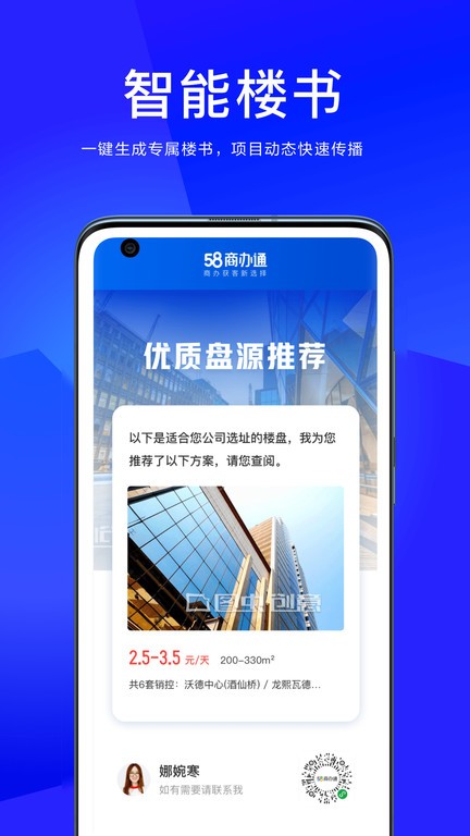 58商办通最新版是一款帮助开发商快速租赁的管理工具,面向所有开发商客户,打造专属招商平台,可同时触达58同城&安居客两大平台的找房客户和优质经纪人。此APP致力于打造一个全新的开发商生态圈,为开发商提供一站式移动工作平台。