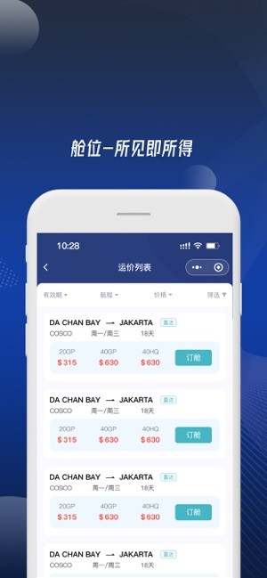 富达网官方版是提供线上订舱的应用平台,提供打造一站式物流数智化订舱服务,舱位所见即所得,运价列表信息一目了然,轻松查询,智能推荐,支持一键订舱,订单可视化管理,随时查看,了解详情,使用方便,安全便捷,值得推荐!