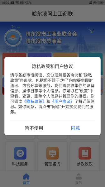 哈尔滨工商联app是一款哈尔滨市工商联合会官方掌上服务管理平台。拥有丰富的内容,最新政策要闻、工商联动态一手掌握,还提供e联工商联、e联企业、e联哈商、e联商会、入会申请等功能,更有政策服务、金融服务、法律服务、人才交流、科技服务、管理咨询等企业服务,操作简单,办公高效!