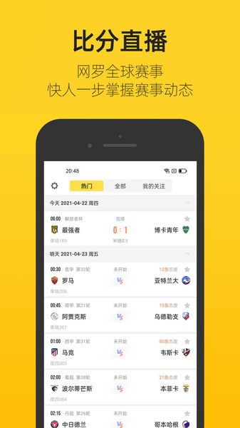 网罗全球赛事,高效及时准确的掌握赛事动态;