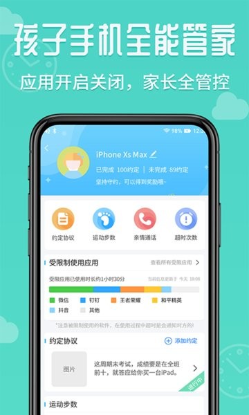 孩子手机全能管象,应用开启关闭,家长全管控。