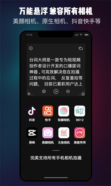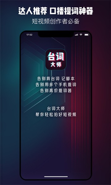 台词大师是专为短视频创作者设计开发的口播提词神器,可高效解决您在拍摄过程中出现的忘词,反复重拍等问题。