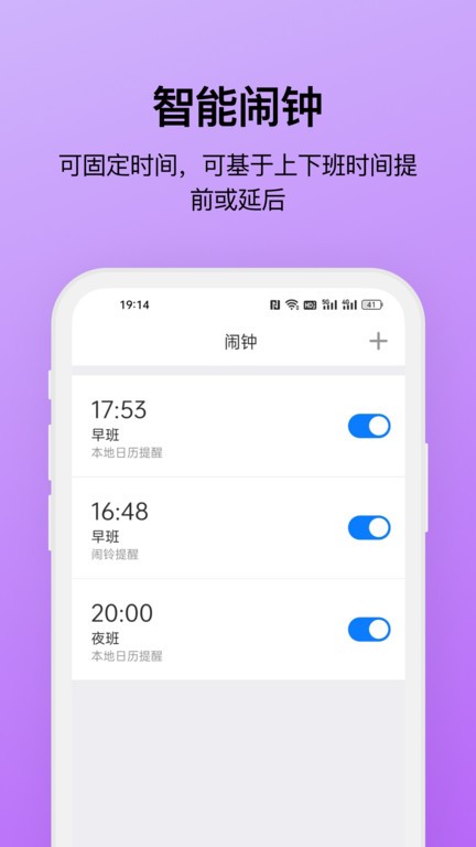 最近更新还增加了闹铃功能和小组件透明模式,这些小细节让我觉得开发者真的很用心。特别是新增的休息时间统计和批量添加闹钟功能,简直是为我量身定做的。总的来说,这个App真的帮了我不少忙,特别是在管理复杂排班表的时候。