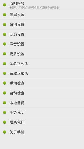 集成点明公司根据盲人操作特点而特别设计的特有手势,支持盲人自设手势操作模式,同时兼容安卓原生操作手。