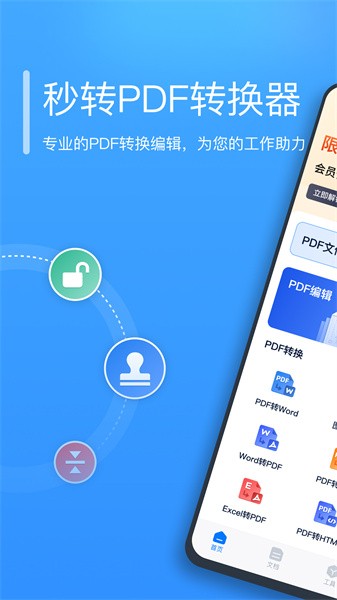 秒转PDF转换器具备快速转换PDF文件格式的功能,同时还可以可以参与编辑PDF文件,并进行诸如合并拆分、解密加密、压缩等操作。软件还内置了多种实用的办公功能如扫描、识别、翻译、图片转换、转文字等等!