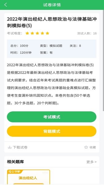 1.完整的演出经纪人题库与丰富的练习与做题模式