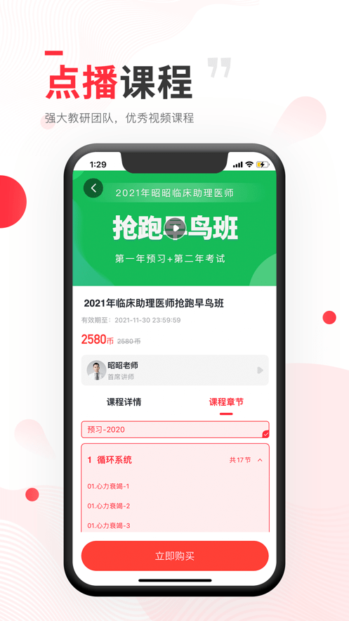 答:你在昭昭医考APP【点播课程】中可随时观看教学视频,昭昭老师会将考试重点用串讲的形式表达出来,昭昭老师有着十几年的临床及教研经验,考试考点烂熟于心,首创的画图记忆法因灵活有趣,也深得广大考生的喜爱,所以你只需要跟随昭昭老师的思路,纵向深耕题目原理,横向拓展相关重点,老师叫你划重点,你就跟着划,老师画图你也画图,在老师的帮助下,慢慢的构建出自己的知识体系,你不仅能做到知其题眼,还能懂其原理!昭昭医考真正做到指向准确,精准备考!昭昭医考的愿景不仅是让您拿证,更多的是为祖国培养出优秀的医学人才!你就是优秀的人才之一!