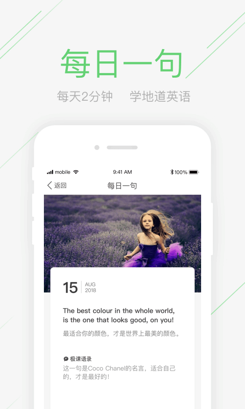 6、每日一句:每天一句地道英文,还可分享精美海报到朋友圈。