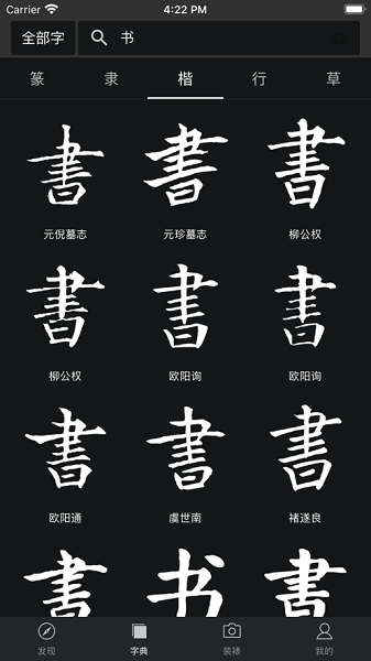 书法字典:三十万书历代名家书法字,包含五种字体:篆书、隶书、楷书、行书、草书等。
