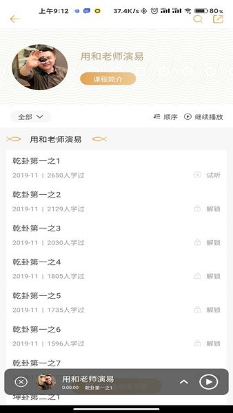 音频、视频学习,选取感兴趣的音频、视频课程进行学习,并可以随时暂停快进后退随时播放;