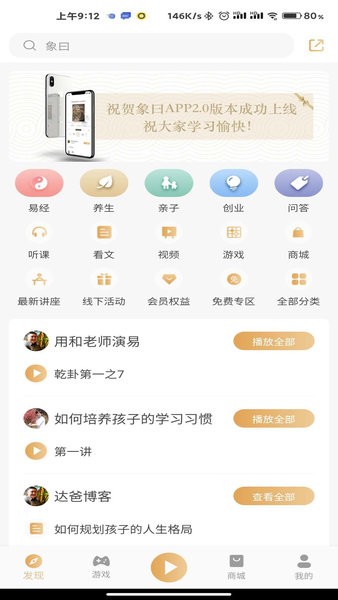 象曰APP最新版更多的是以国学为主,让孩子们更多的学习传统中国文化,内容包括了国学经典、书法、中医养生等,比如大家熟知的易经,会给宝宝们讲解易经中的各种道理,感受国学之美。