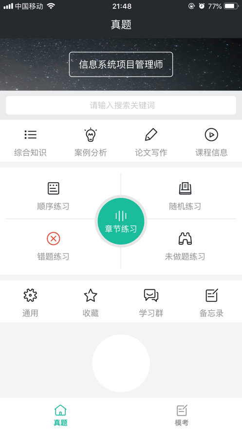 多种做题模式,可按照顺序练习、分章节练习、错题练习、随机练习、未做题练习。