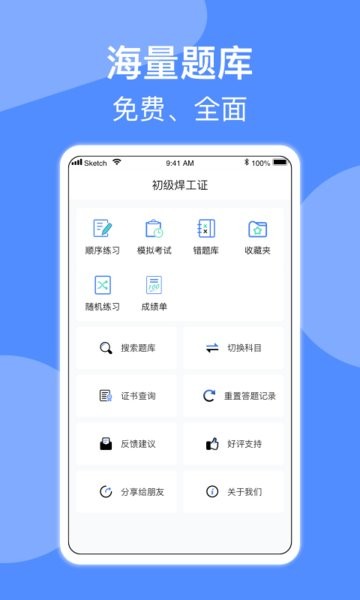 顺序练习、随机练习、模拟考试,试题收藏、错题复习等各种刷题模式。