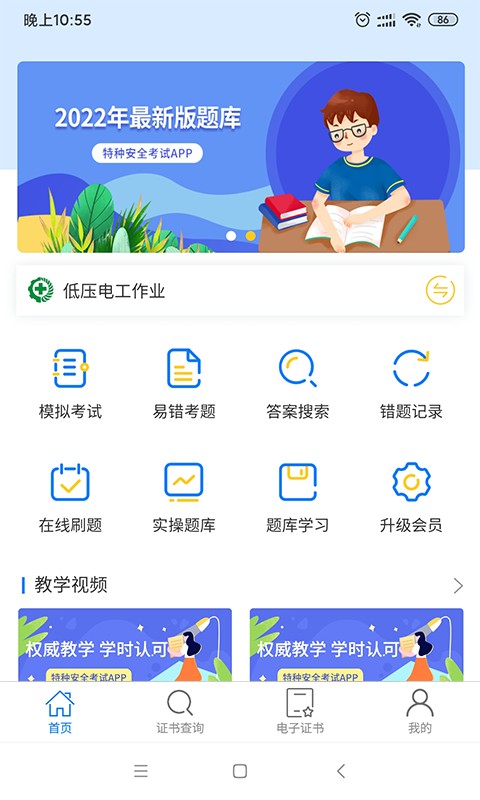 特种安全考试app最新版拥有非常详细的教学视频、习题等资源,支持在线刷题,搜题,可以整理易错考题,能够查看详细的错题记录,还可以在线查询证书,能够按照主管部门、地方题库、准操项目以及作业类别来进行科目的选择!