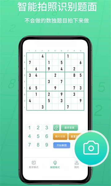 解题模式下您可以手动输入题目、拍照识别或者识别截图题目,多种方式给您贴心的解题体验。一步步引导您解开题目。数独原来如此简单!