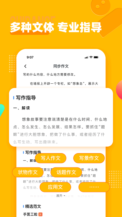 1、上百个题材分类,按照:叙事、写景、写物、写人等上百个分类划分,帮助学生全方位地修炼作文功底。