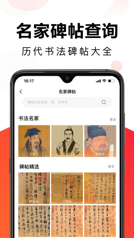 你可以在平台里搜索名家字帖进行查看,更好的进行临摹,非常的方便;