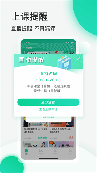 小黑课堂是专业的大学生在线学习平台,专注计算机二级考证、考研、英语四六级、教师资格证、职场课,提供完整的计算机二级、考研、教师资格证、职场课等相关的直播课、录播课、配套资料、模拟测试等考试学习解决方案,旨在提升大学生职场办公能力,学好技能,顺带考证!
