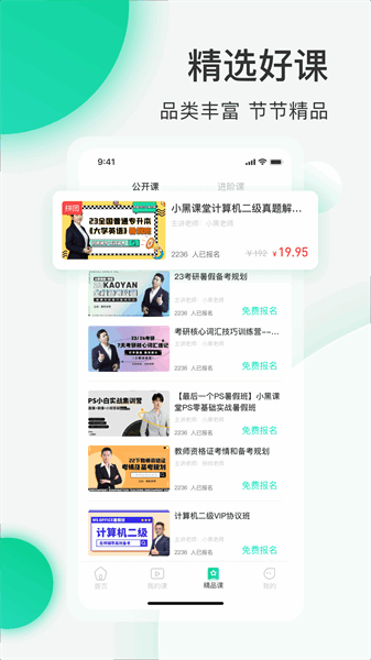 小黑课堂app,一款全新的在线学习软件,平台上有大量的课程知识提供给大家选择,涉及的学科也丰富多样,不管是计算机、英语还是考研相关的内容都包括在内,用户可以根据自己的需求在线学习,有针对性的备考,实用性极强,有需要的朋友快来下载体验吧~