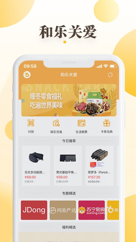 和乐关爱平台专注于为企业提供完整的福利费控、集采费控、差旅费控、营销费控应用平台及数字化工会定制、党建活动等相关服务,其中福利费控解决方案是整个平台的核心业务。同时,平台提供多品类实物商品、品牌卡券、定向福利、定制服务等多种福利商品,通过“互联网+员工福利管理”的便捷形式,满足员工多样消费场景和个性化需求,有效解决企业福利选择“众口难调”的问题,提升员工满意度和幸福感。