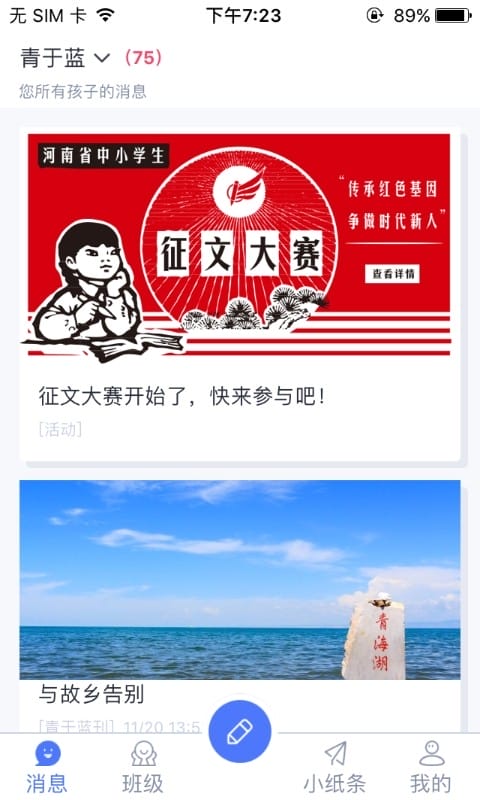 传统家长群发送通知的方式是把通知内容发布到群聊里,家长需要从众多聊天记录里查找,很是费劲。青于蓝采取“一对一”的传播模式,老师发送的每一个通知都会精准推送到家长主页。每当老师发布通知后,系统还会发送短信提醒家长查看。