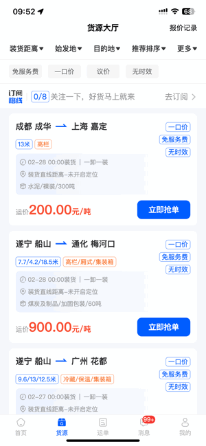 细致的筛选功能让您能迅速锁定合适货源。详细的货源信息和一键联系功能,以及便捷的接单流程,均旨在简化您的业务流程,加速您的货运进程。