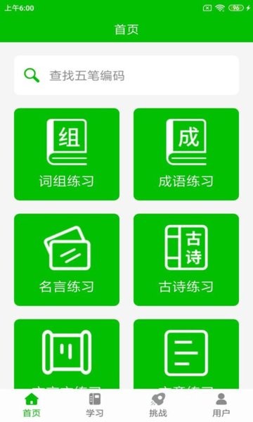 五笔打字练习app让用户随时都可以进行五笔打字的练习,让员工服学习五笔输入法更加的方便,软件之中拥有多种练习方法可以让用户获得更多的练习,还有学习模式可以学习。