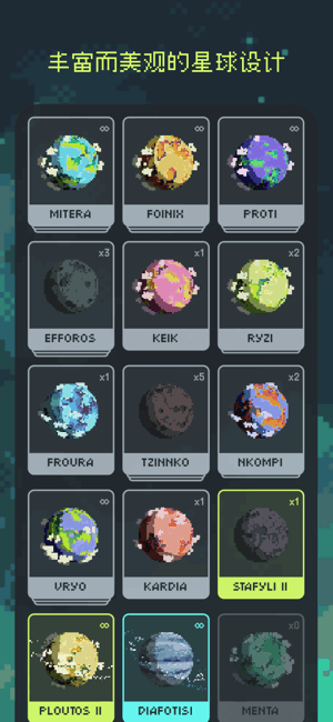我们提供了上百种不同的星球设计,并且每颗星球都是独一无二的,充分满足你的好奇心和收藏欲,带来源源不断的惊喜。你只有通过专注完成星球的演化后,才能看到它的庐山真面目。通过专注获取的“星尘币”可以用来解锁新的星球种子,激励你不断保持专注。