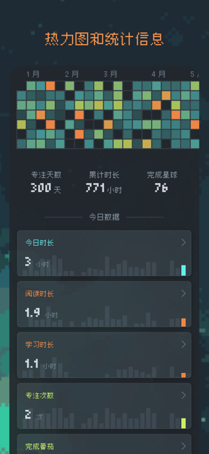 根据你的专注数据,我们提供了个性化的统计图表,让你了解自己的专注情况,并且更有动力保持持续的专注。