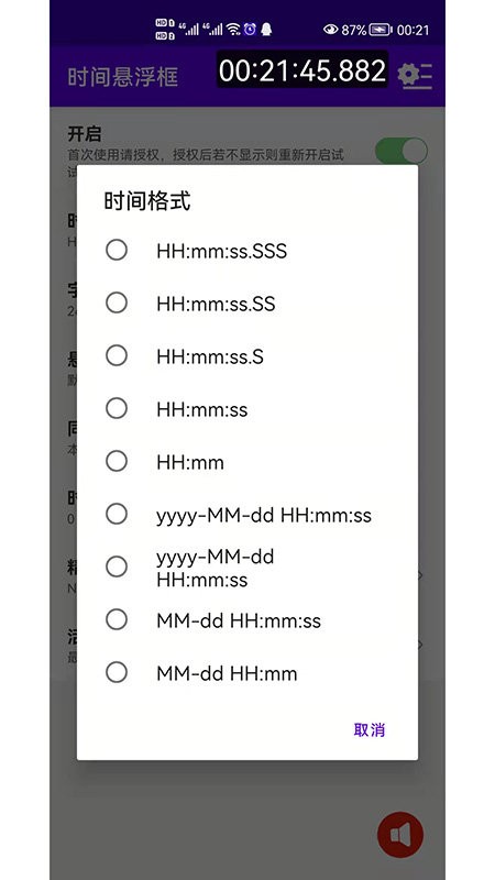 1.悬浮时间,支持时间显秒功能,自定义时间显示格式。