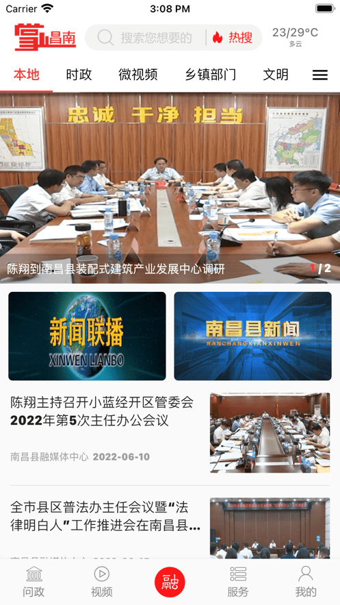 掌上昌南app官方最新版为南昌县打造的本地生活服务软件,可以及时了解本地要闻,有文字新闻也有视频新闻,能在线看精彩的本地电视节目,提供了公交出行、医疗、社保、天气等常用的民生服务,还可以听广播学习党建知识哦。
