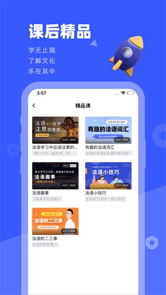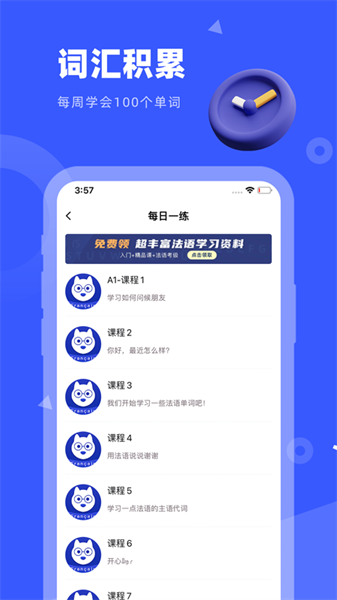 地道的口语日常学习,劳逸结合,趣味学习,提高学习沉浸感,在趣味学习中感受法语能力提升。
