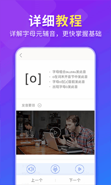 2、确保纯正发音,每个音标的发音音频都是专业法语外教录制而成。