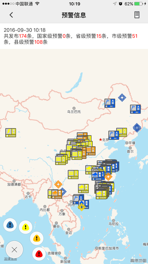“中国气象”客户端不仅提供权威的气象信息,还为决策用户提供图形化的电子信息地图组件服务,可以在电子地图上展现气象监测、预报服务、气象灾害预警、云图、台风路径、雷达图、降雨图等气象信息。