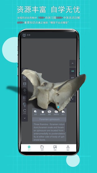 3.500+AR解剖模型资源,全程同步自用教材,让有医学生真正做到“哪里不会点哪里”。