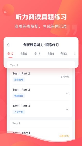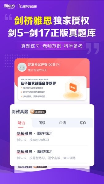 1.新增【剑桥雅思口语、写作真题】,官方授权正版真题,放心练免费刷!