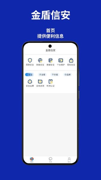 金盾信安APP是金盾信安服务线上化统一门户,由热点新闻、合规咨询、检测认证、监测预警、重保运维、监督检查、应急响应、教育培训等十大模块组成,APP以国家网络与数据相关法律法规确定的相关制度为遵循,归口金盾信安主营业务 ,实现服务全流程、全链条电子化、数字化流转,支撑公司数字化转型进程,提升服务的信息化水平,打造金盾信安网络与数据安全服务相关业务数字化、标准化、智能化服务门户,为金盾信安业务拓展、项目实施,客户服务提供系统支持。