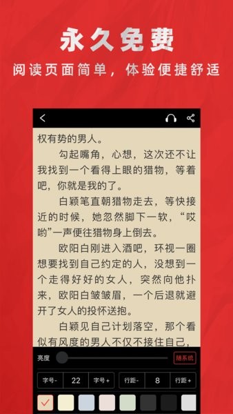 都市、玄幻、悬疑、言情、军事、历史等各种类型热门小说,为您智能推荐,从此告别书荒!锁屏时间任意切换,翻页模式随意更改,字体大小随时调整,给您更好的阅读体验!