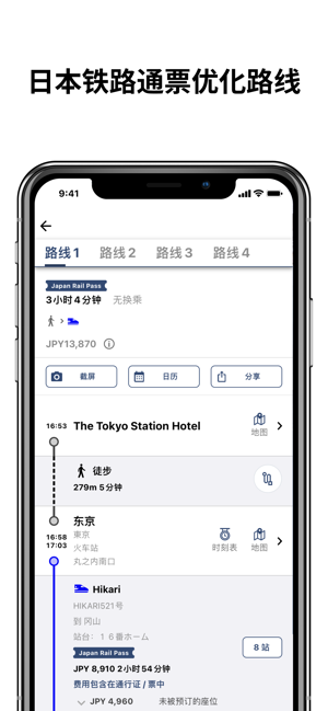 -- 旅游通票/票券模式将优先提供适用于铁路通票(如日本铁路通票Japan Rail Pass等)区间的有效路线。